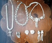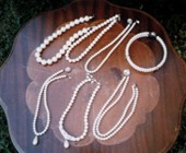 Earring (イヤリング、耳飾り) は、 ネックレスと同様に、 真珠、 ラインストーン、 コンビネーションのものとあります。 大きさも大小さまざまですし、 デザインも豊富ですので、 いろいろ試されるのがよろしいでしょう。