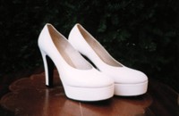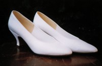 Shoes (靴) は、 正式には、サテンなどの布製が良いのですが、 近年は構わなくなり、 エナメル、牛革、コンビネーションのもの、 飾りのついたもの、 淡いベージュ、 淡いグレーまで許されています。